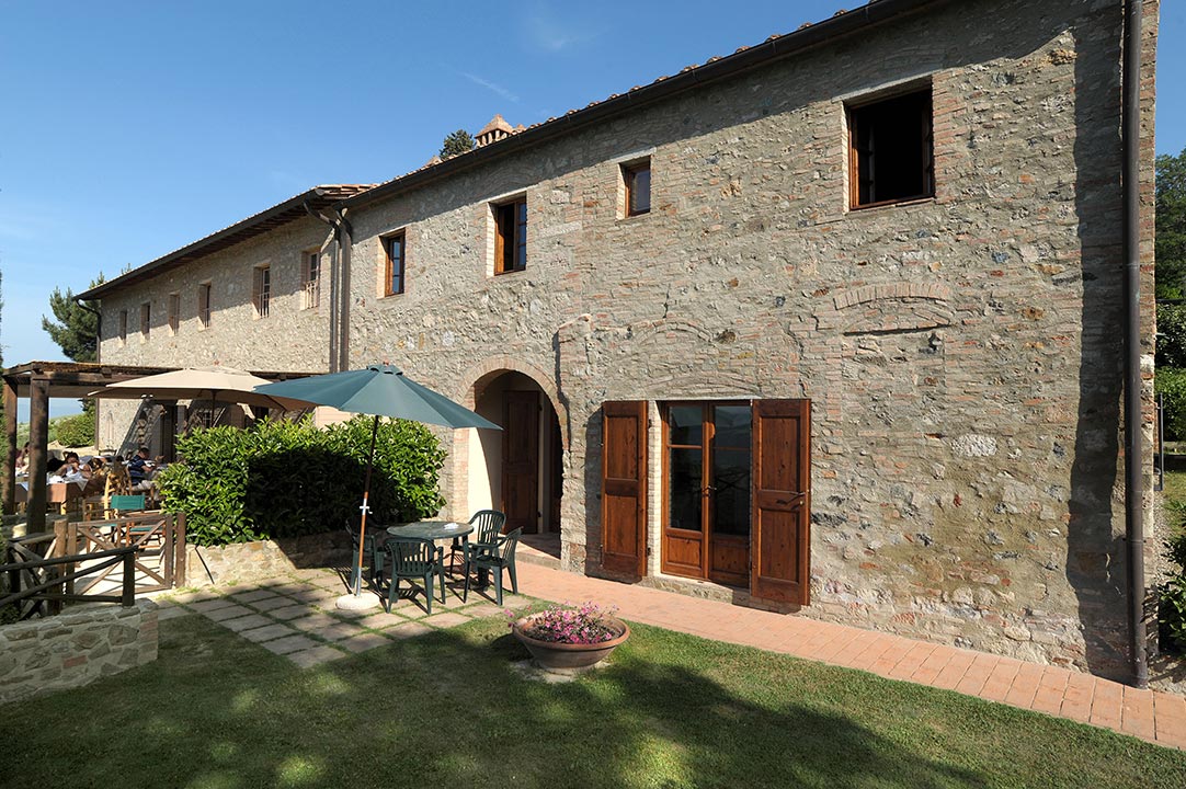 The private terrace has a sun umbrella, table and chairs and a large panoramic garden, overviewing the pool area and the valley below Il Defizio.